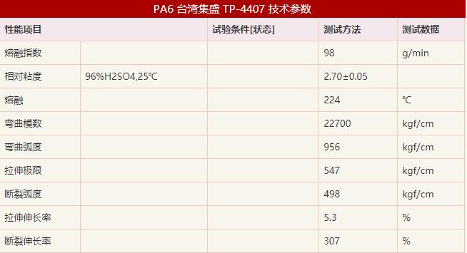PA6臺(tái)灣集盛 注塑級(jí)TP-4407 技術(shù)參數(shù)
